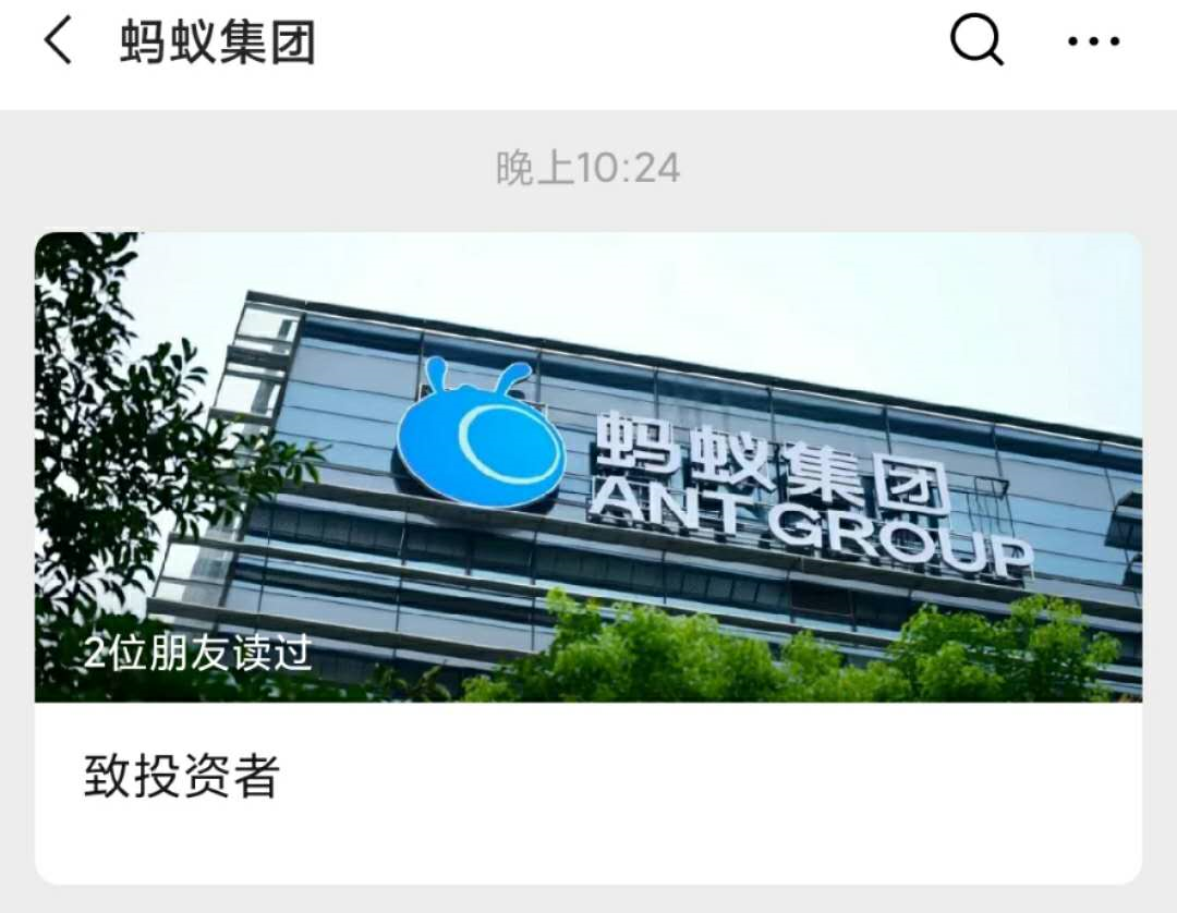 蚂蚁集团于今日接到上海证券交易所通知,暂缓在上海证券交易所A股上市计划。受此影响,蚂蚁决定于香港联交所H股同步上市的计划也将暂缓。 对由此给投资者带来的麻烦,蚂蚁集团深表歉意。我们将按照两地交易所的相关规则,妥善处理好后续工作。 稳妥创新、拥抱监管、服务实体、开放共赢,会让蚂蚁集团经得起考验和信任。我们会坚持我们的初心和使命,继续用我们的热情、专业、担当,致力于为广大小微企业和大众消费者做好服务。有关发行上市的下一步进展我们将与上海证券交易所及监管部门保持密切沟通,并及时披露相关情况。 蚂蚁集团 2020年11月3日 Dear investors, Ant Group was notified by the Shanghai Stock Exchange today that our A share listing plan on the Shanghai Stock Exchange would be suspended. Consequently, Ant has decided that the concurrent H share listing plan on the Hong Kong Stock Exchange shall also be suspended. Ant Group sincerely apologizes to you for any inconvenience caused by this development. We will properly handle the follow-up matters in accordance with applicable regulations of the two stock exchanges. We will overcome the challenges and live up to the trust on the principles of: stable innovation; embrace of regulation; service to the real economy; and win-win cooperation. We will continue to serve small and micro businesses and ordinary citizens with our passion, professionalism and commitment for society. We will keep in close communications with the Shanghai Stock Exchange and relevant regulators, and wait for their further notice with respect to further developments of our offering and listing process and disclose in a timely manner. Ant Group November 3, 2020