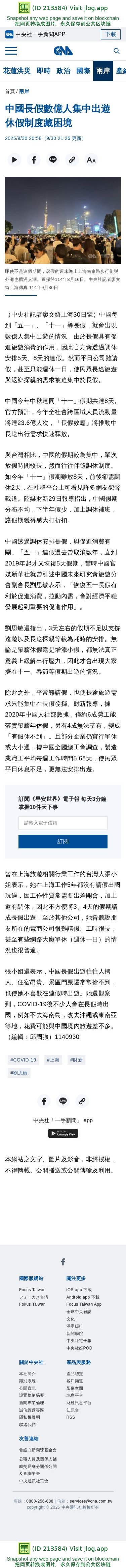 中國長假數億人集中出遊 休假制度藏困境 | 兩岸 | 中央社 CNA
