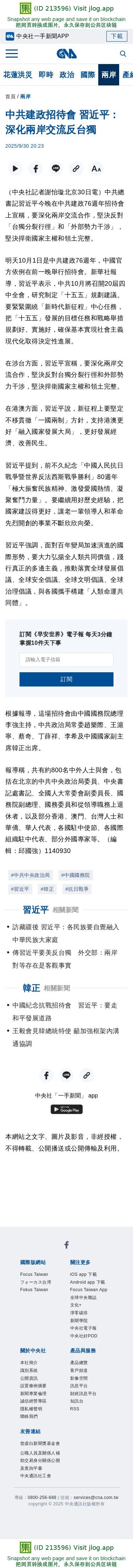 中共建政招待會 習近平:深化兩岸交流反台獨 | 兩岸 | 中央社 CNA