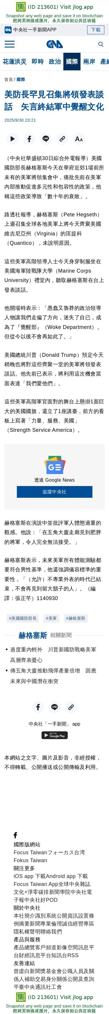 美防長罕見召集將領發表談話 矢言終結軍中覺醒文化 | 國際 | 中央社 CNA
