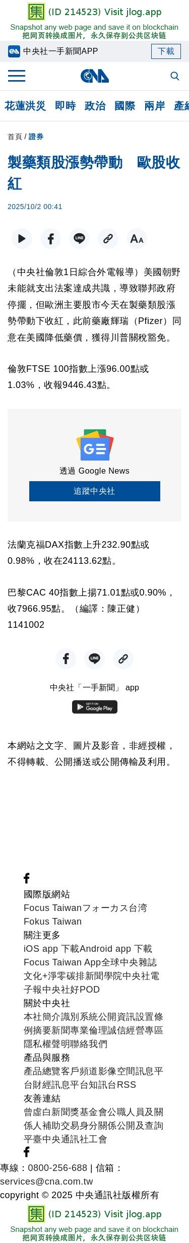 製藥類股漲勢帶動 歐股收紅 | 證券 | 中央社 CNA