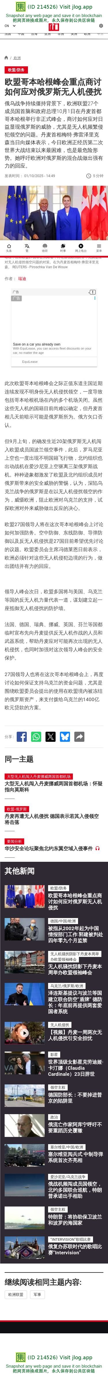欧盟哥本哈根峰会重点商讨如何应对俄罗斯无人机侵扰