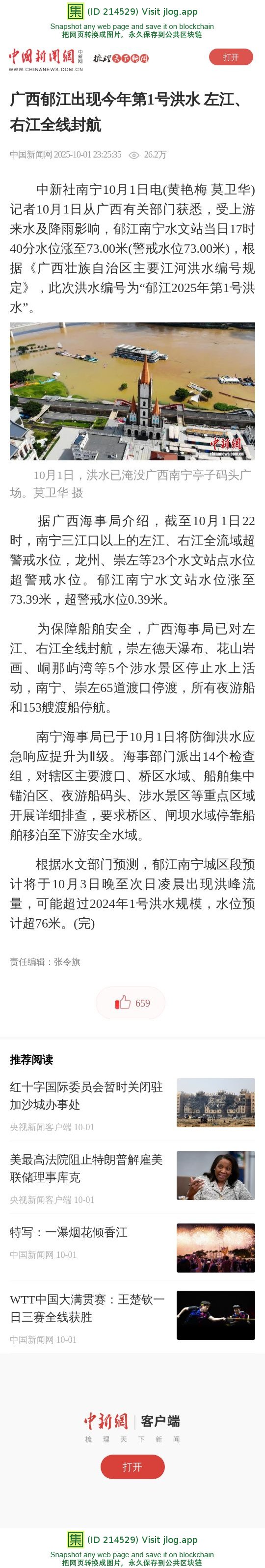 广西郁江出现今年第1号洪水 左江、右江全线封航