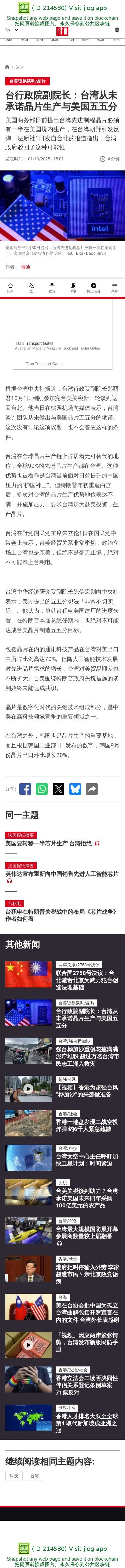 台行政院副院长:台湾从未承诺晶片生产与美国五五分