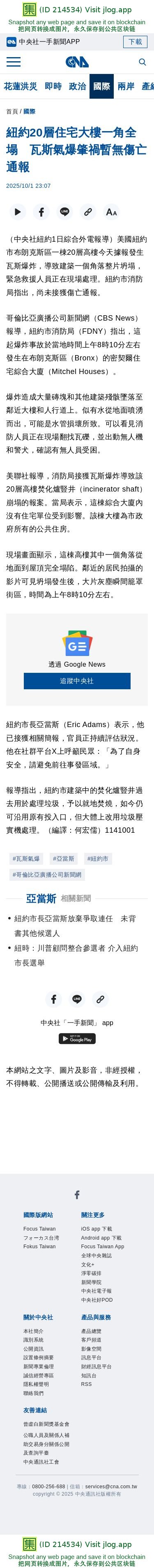 紐約20層住宅大樓一角全塌 瓦斯氣爆肇禍暫無傷亡通報 | 國際 | 中央社 CNA