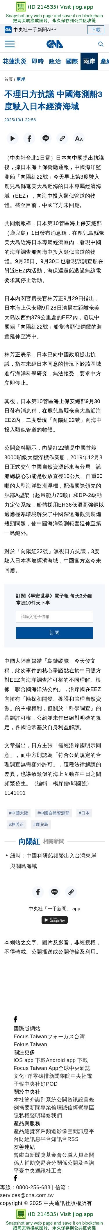 不理日方抗議 中國海測船3度駛入日本經濟海域 | 兩岸 | 中央社 CNA