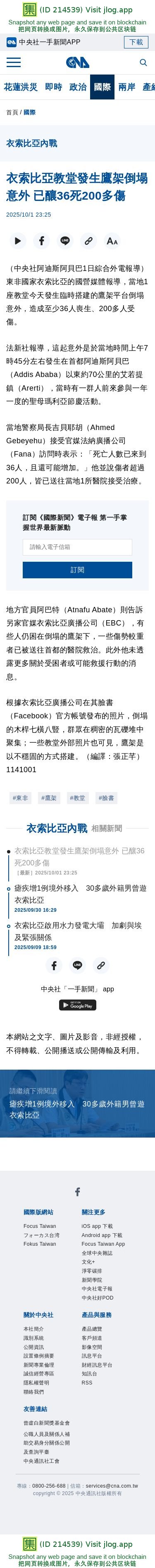 衣索比亞教堂發生鷹架倒塌意外 已釀36死200多傷 | 國際 | 中央社 CNA