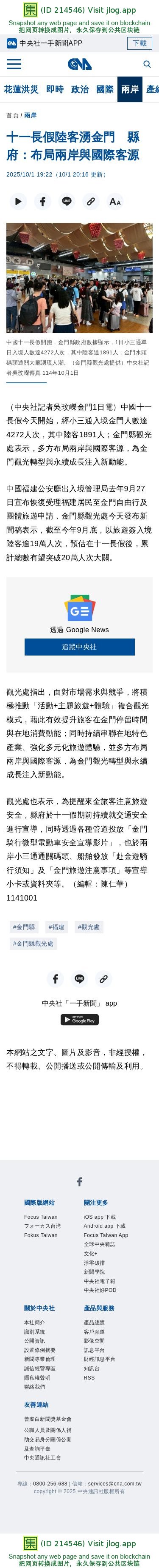 十一長假陸客湧金門 縣府:布局兩岸與國際客源 | 兩岸 | 中央社 CNA