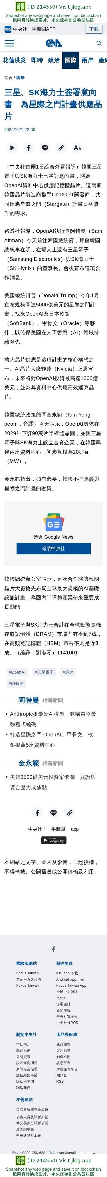 三星、SK海力士簽署意向書 為星際之門計畫供應晶片 | 國際 | 中央社 CNA