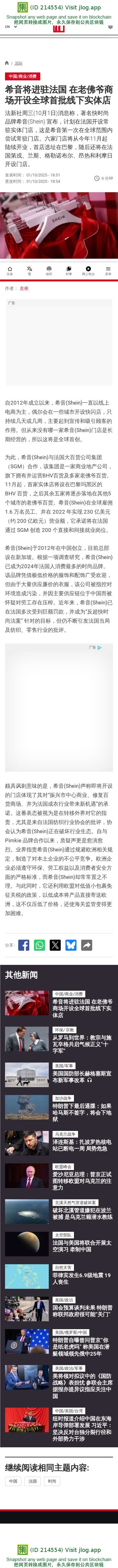 希音将进驻法国 在老佛爷商场开设全球首批线下实体店