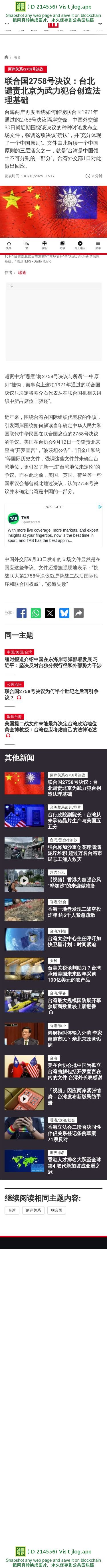 联合国2758号决议:台北谴责北京为武力犯台创造法理基础