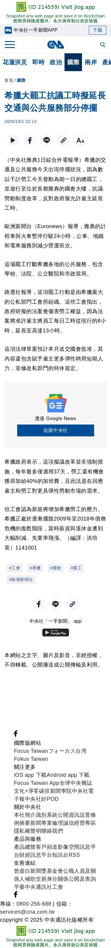 希臘大罷工抗議工時擬延長 交通與公共服務部分停擺 | 國際 | 中央社 CNA