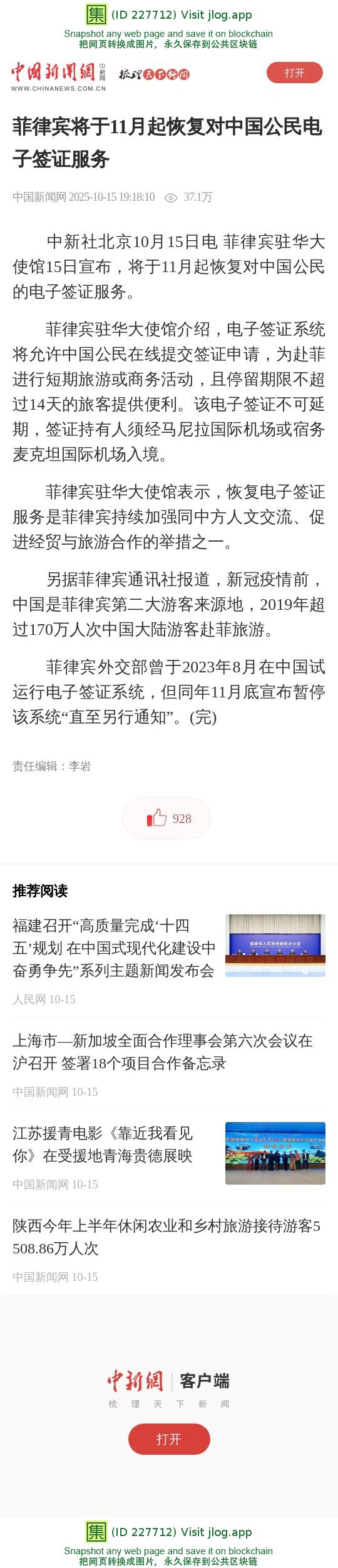 菲律宾将于11月起恢复对中国公民电子签证服务