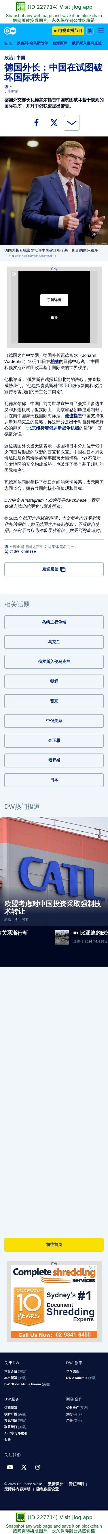 德国外长:中国在试图破坏国际秩序 – DW – 2025年10月15日