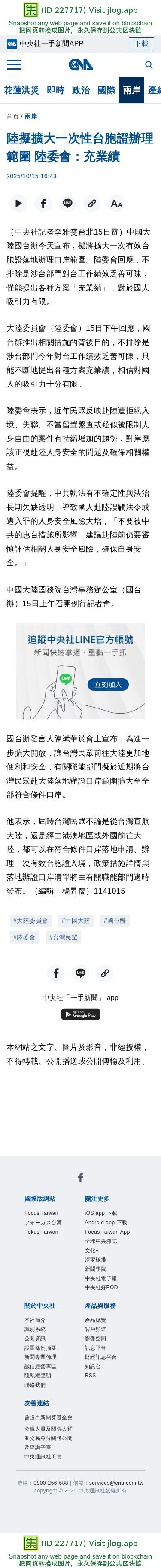 陸擬擴大一次性台胞證辦理範圍 陸委會:充業績 | 兩岸 | 中央社 CNA