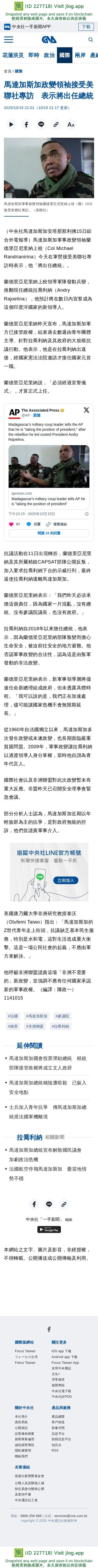 馬達加斯加政變領袖接受美聯社專訪 表示將出任總統 | 國際 | 中央社 CNA