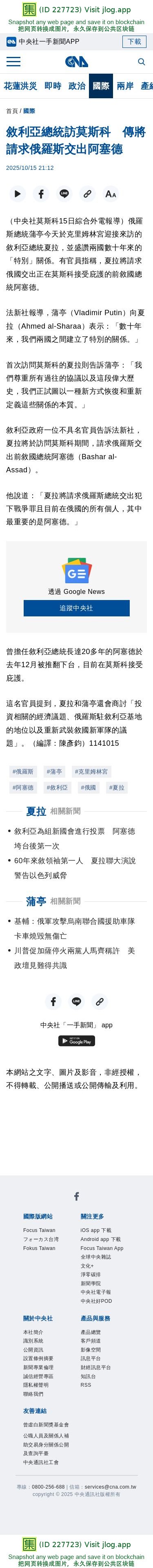 敘利亞總統訪莫斯科 傳將請求俄羅斯交出阿塞德 | 國際 | 中央社 CNA