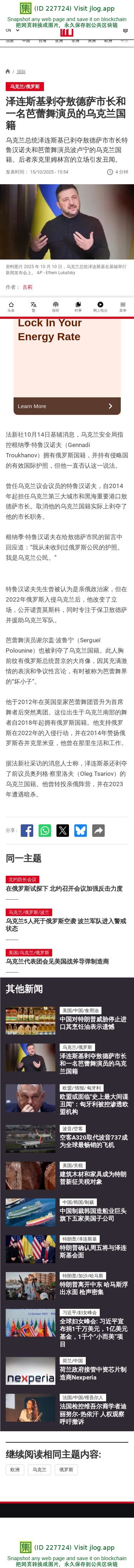 泽连斯基剥夺敖德萨市长和一名芭蕾舞演员的乌克兰国籍