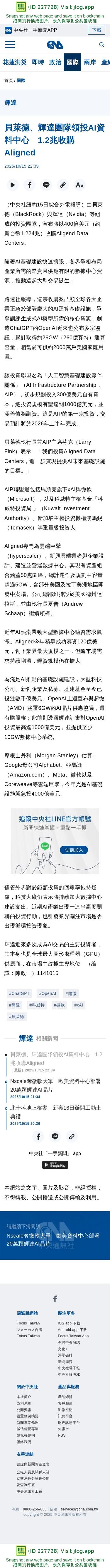貝萊德、輝達團隊領投AI資料中心 1.2兆收購Aligned | 國際 | 中央社 CNA
