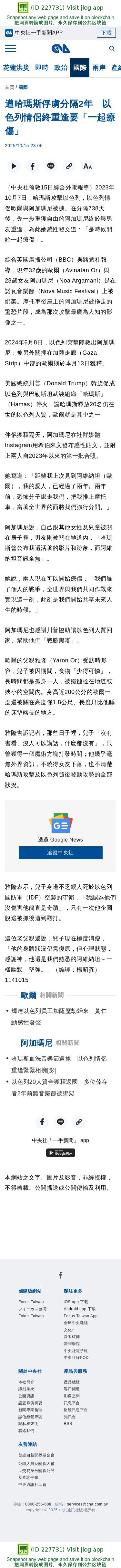 遭哈瑪斯俘虜分隔2年 以色列情侶終重逢要「一起療傷」 | 國際 | 中央社 CNA