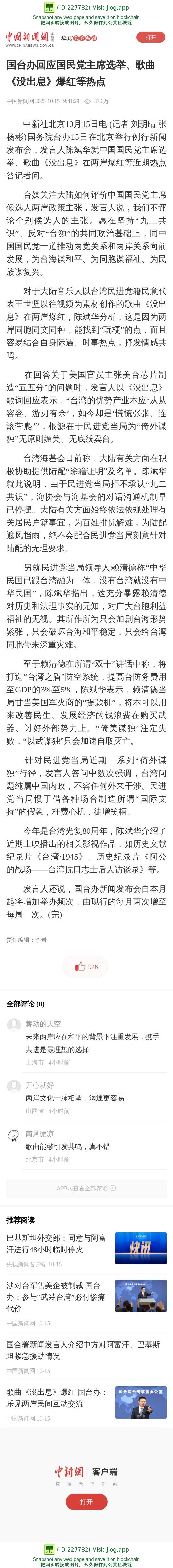 国台办回应国民党主席选举、歌曲《没出息》爆红等热点