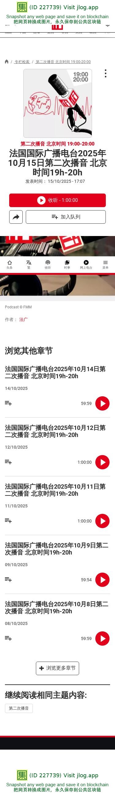 法国国际广播电台2025年10月15日第二次播音 北京时间19h-20h - 第二次播音 北京时间 19:00-20:00