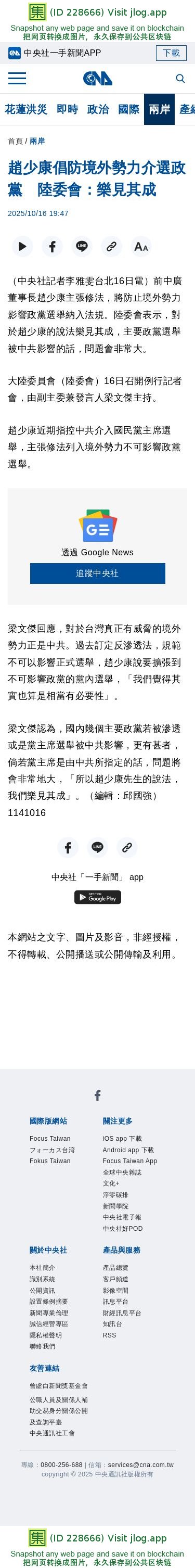 趙少康倡防境外勢力介選政黨 陸委會:樂見其成 | 兩岸 | 中央社 CNA