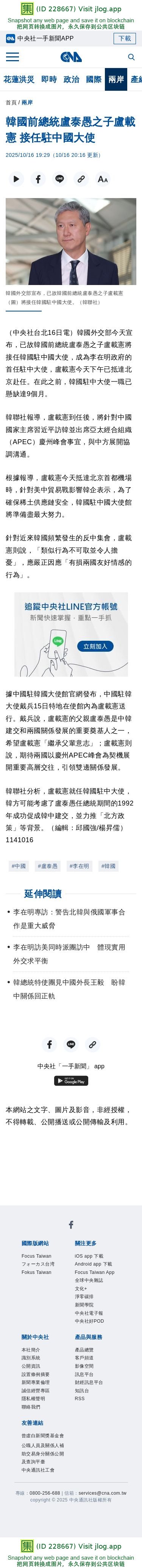 韓國前總統盧泰愚之子盧載憲 接任駐中國大使 | 兩岸 | 中央社 CNA