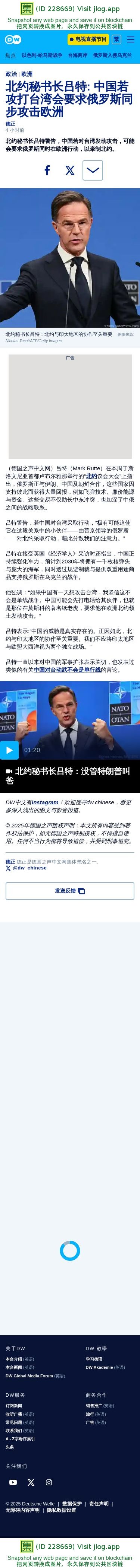北约秘书长吕特: 中国若攻打台湾会要求俄罗斯同步攻击欧洲 – DW – 2025年10月16日