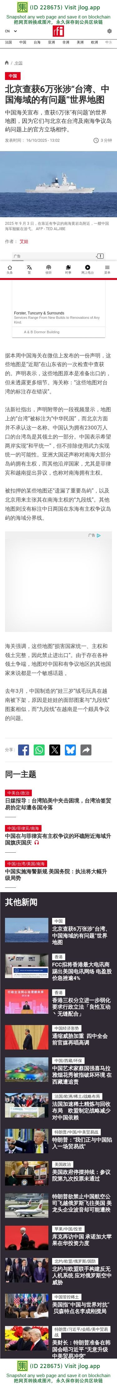 北京查获6万张涉“台湾、中国海域的有问题”世界地图