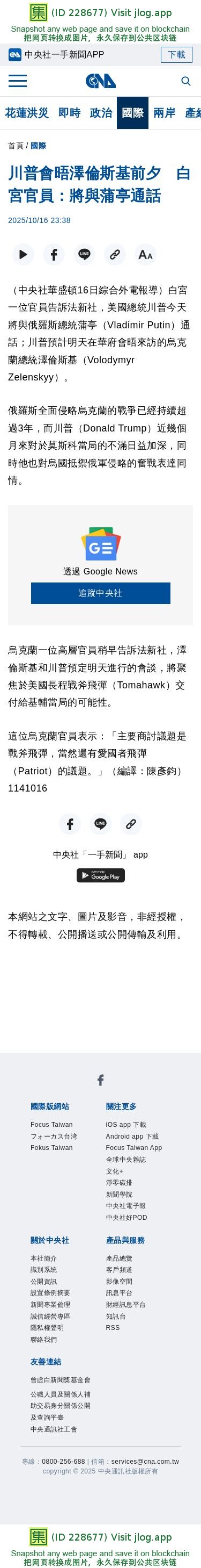 川普會晤澤倫斯基前夕 白宮官員:將與蒲亭通話 | 國際 | 中央社 CNA