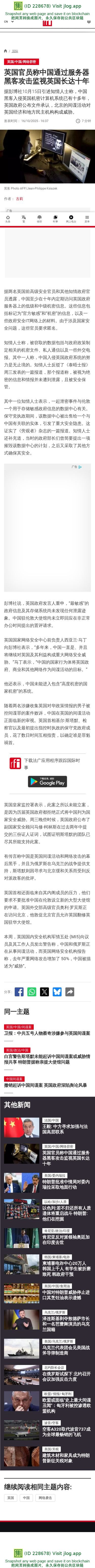 英国官员称中国通过服务器黑客攻击监视英国长达十年