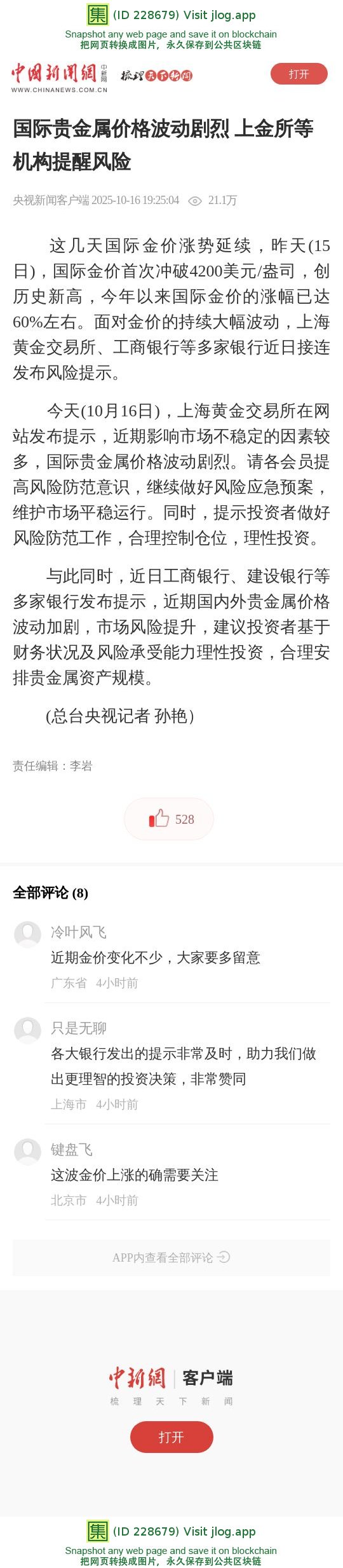 国际贵金属价格波动剧烈 上金所等机构提醒风险