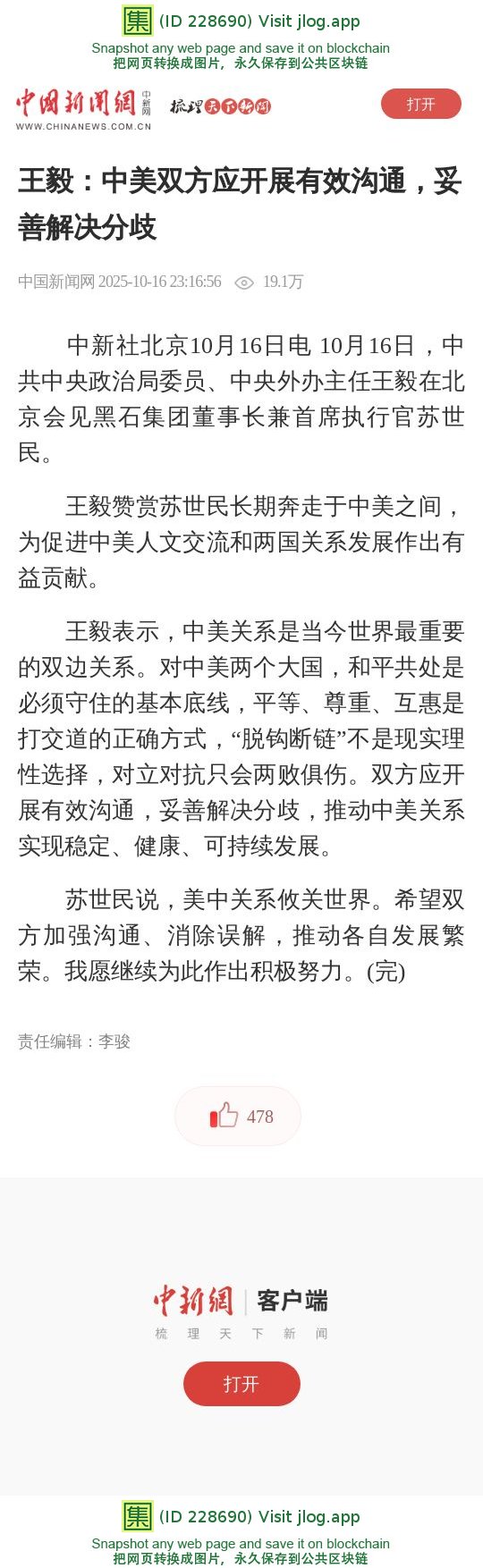 王毅:中美双方应开展有效沟通,妥善解决分歧
