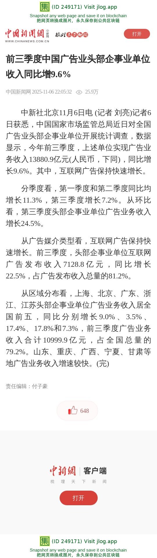 前三季度中国广告业头部企事业单位收入同比增9.6%