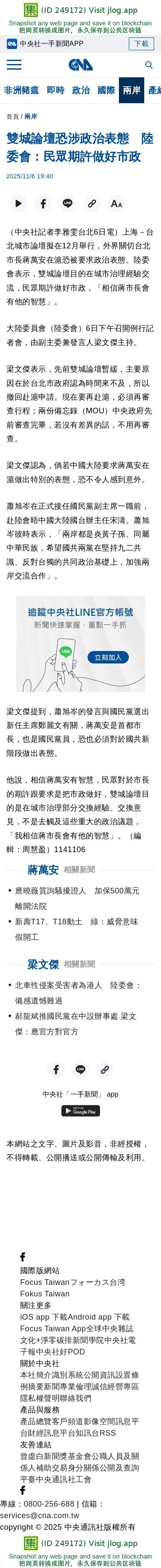 雙城論壇恐涉政治表態 陸委會:民眾期許做好市政 | 兩岸 | 中央社 CNA