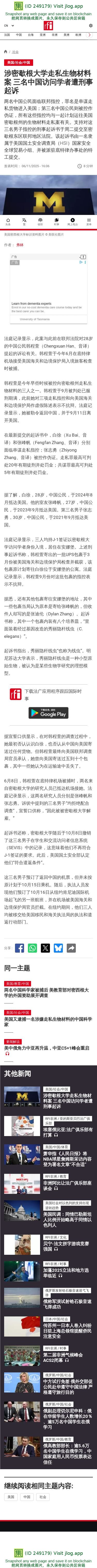 涉密歇根大学走私生物材料案 三名中国访问学者遭刑事起诉