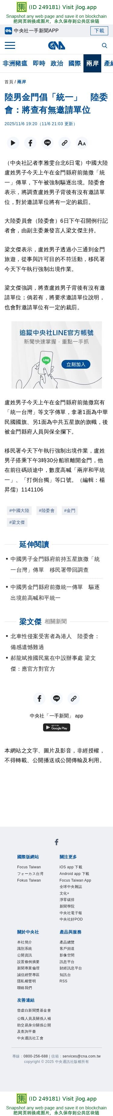 陸男金門倡「統一」 陸委會:將查有無邀請單位 | 兩岸 | 中央社 CNA