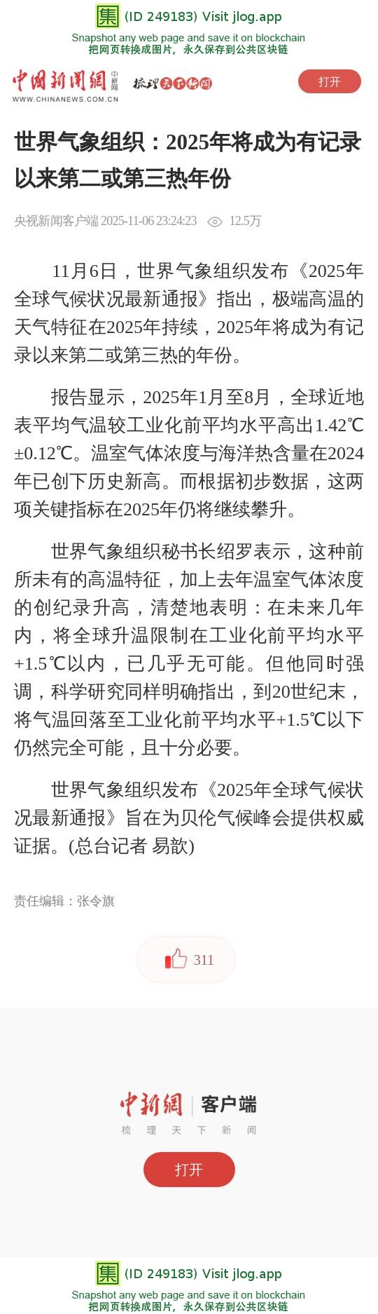 世界气象组织:2025年将成为有记录以来第二或第三热年份