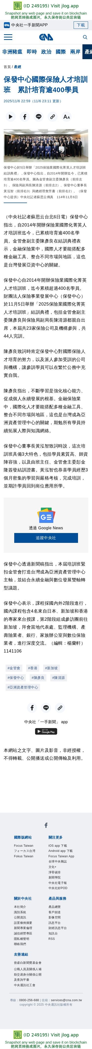 保發中心國際保險人才培訓班 累計培育逾400學員 | 產經 | 中央社 CNA