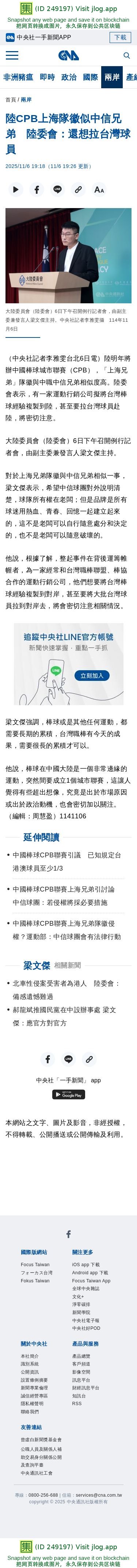 陸CPB上海隊徽似中信兄弟 陸委會:還想拉台灣球員 | 兩岸 | 中央社 CNA