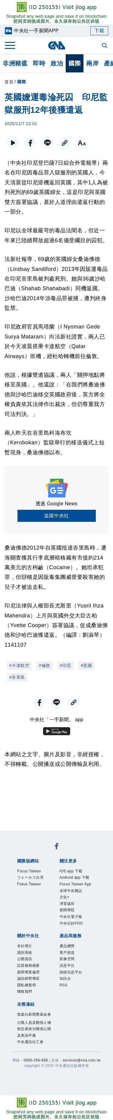 英國嬤運毒淪死囚 印尼監獄服刑12年後獲遣返 | 國際 | 中央社 CNA