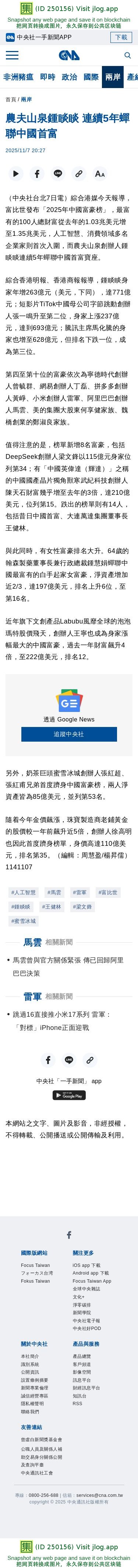 農夫山泉鍾睒睒 連續5年蟬聯中國首富 | 兩岸 | 中央社 CNA