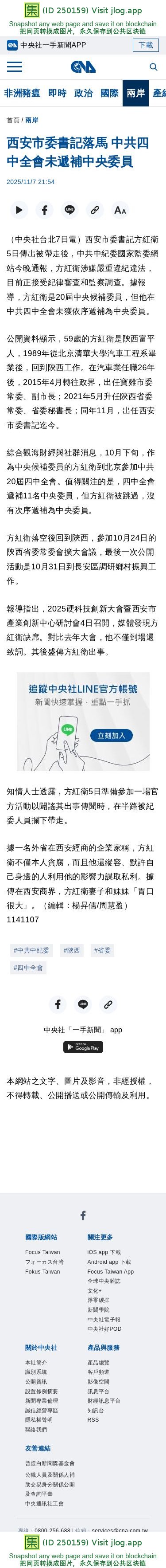 西安市委書記落馬 中共四中全會未遞補中央委員 | 兩岸 | 中央社 CNA