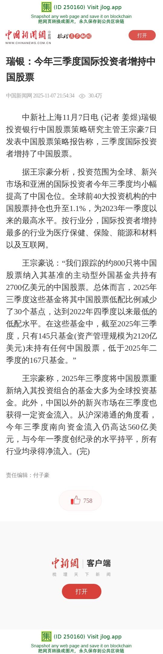 瑞银:今年三季度国际投资者增持中国股票