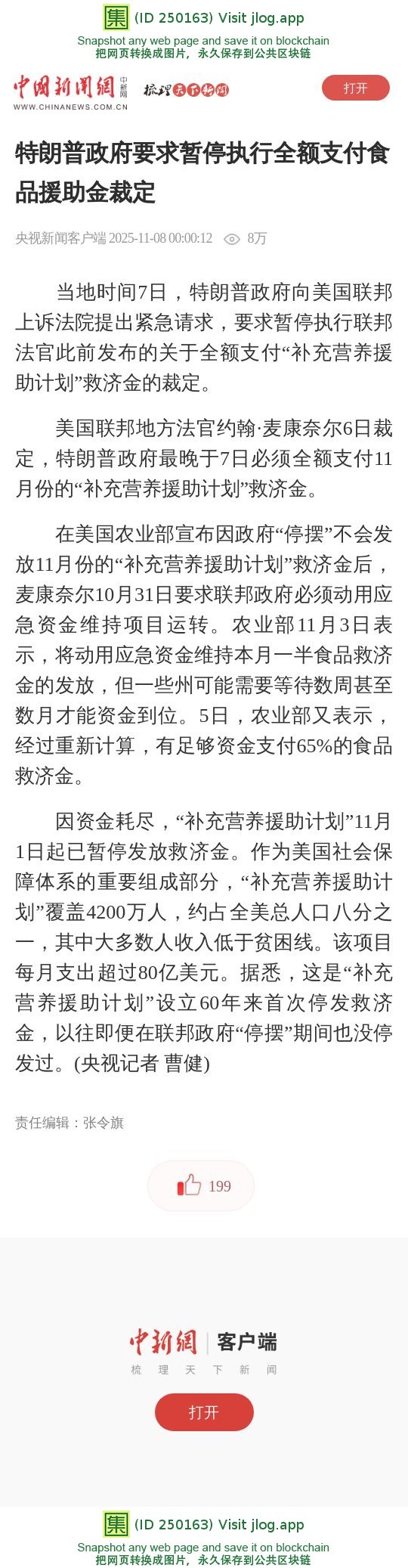 特朗普政府要求暂停执行全额支付食品援助金裁定