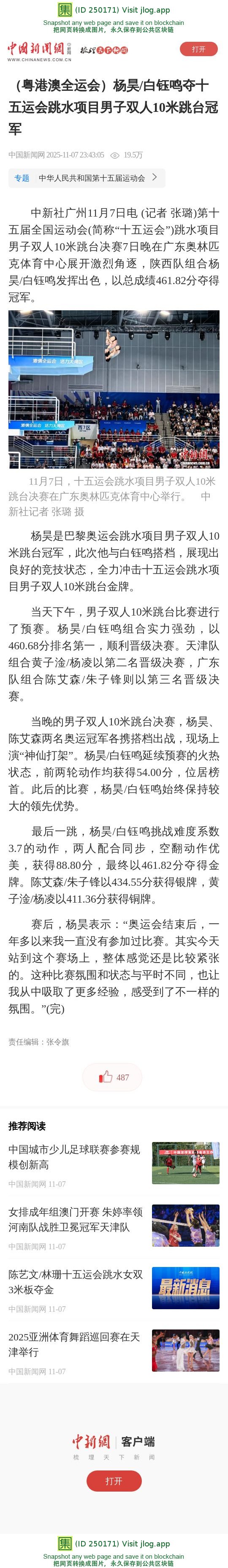(粤港澳全运会)杨昊/白钰鸣夺十五运会跳水项目男子双人10米跳台冠军