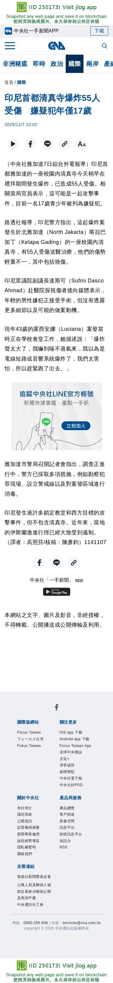 印尼首都清真寺爆炸55人受傷 嫌疑犯年僅17歲 | 國際 | 中央社 CNA