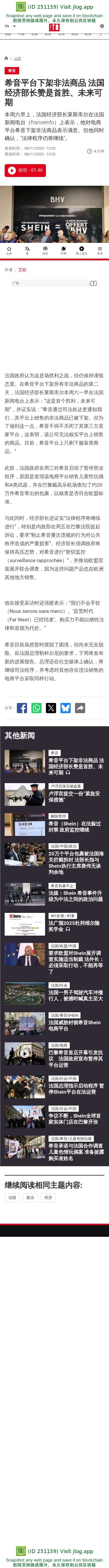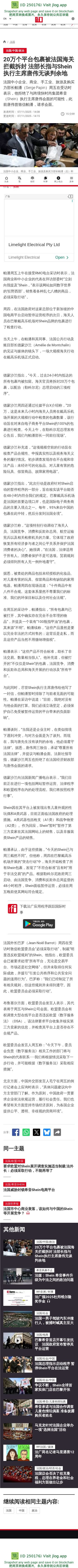 20万个平台包裹被法国海关拦截拆封 法部长指与Shein执行主席唐伟无谈判余地