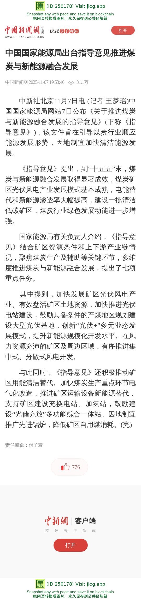 中国国家能源局出台指导意见推进煤炭与新能源融合发展